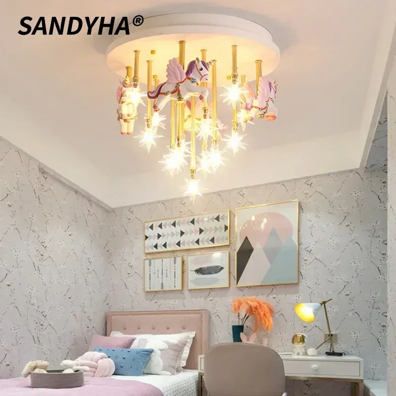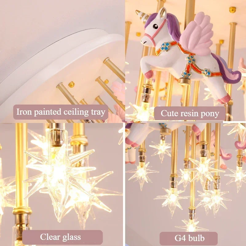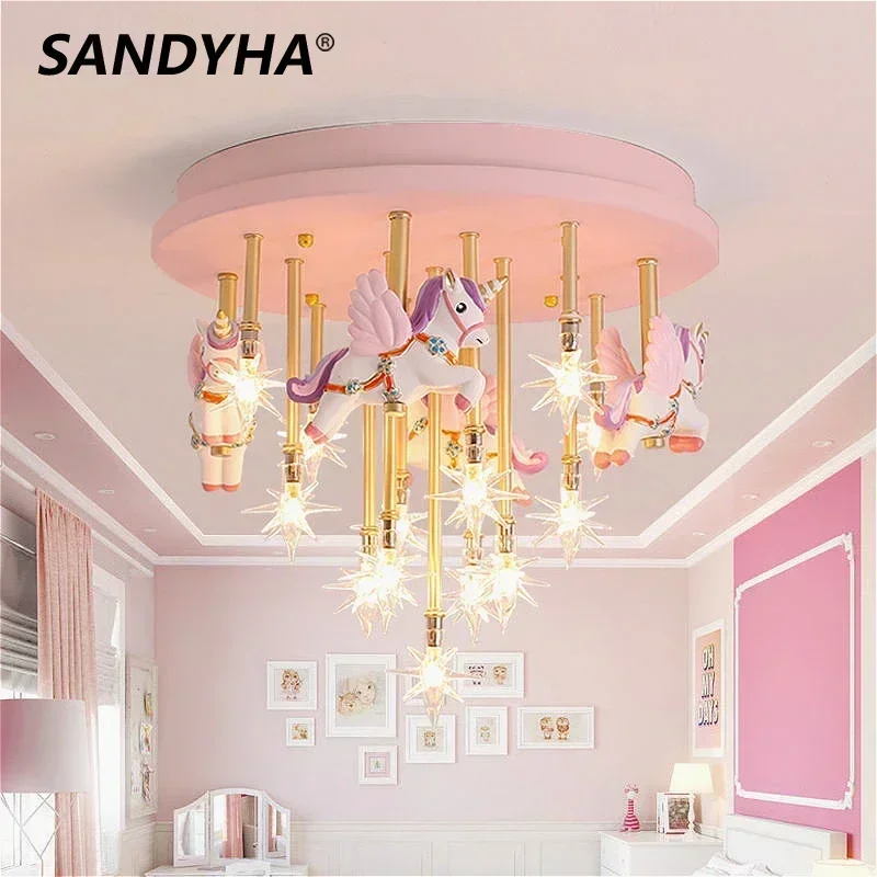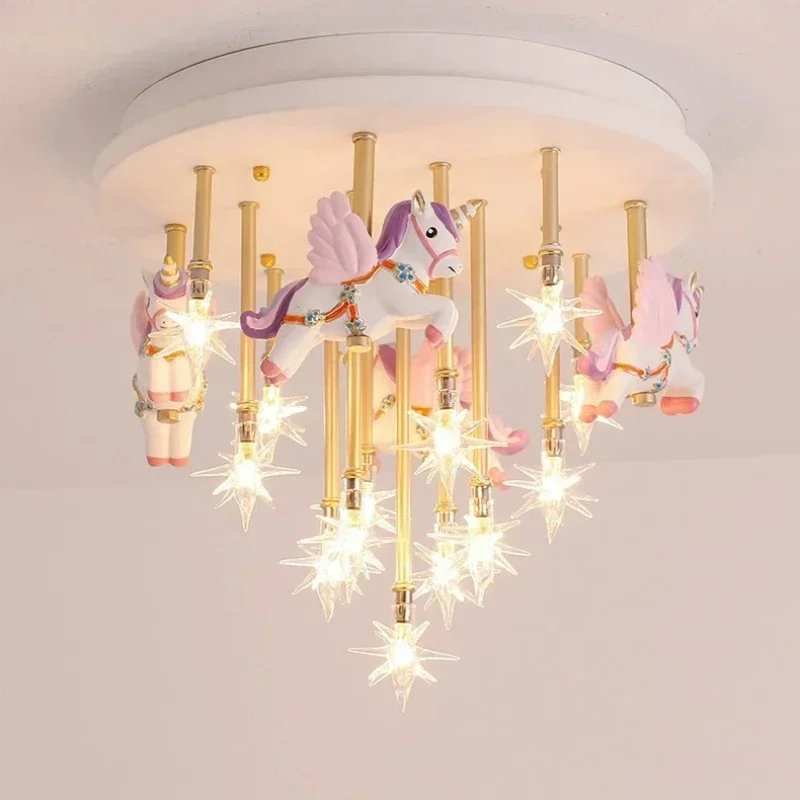 Cartoon Pink Ceiling Light Unicorn Star Lustre Hanging Chandelier Home Decor Children’ Room Baby Bedroom Led Pendant Light
